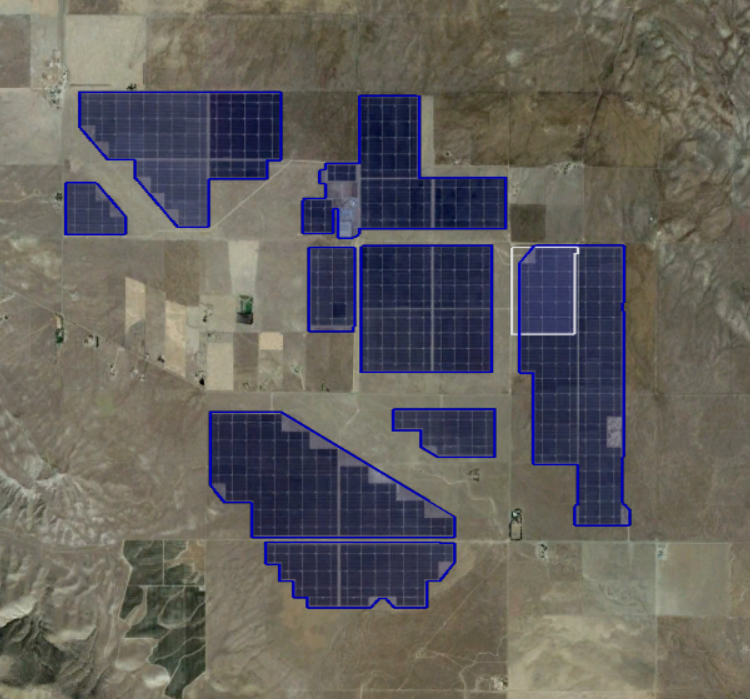 ? ? ? 美國這次排名最高的是第 4 位(之前排名第 6 位的 Solar Star 現(xiàn)在降至第 10 位)。作為美國最早的公用事業(yè)規(guī)模太陽能發(fā)電廠之一,銅山項目的第一階段于 2010 年首次由 Sempra Energy 連接。當(dāng)最南端的第五階段于今年 3 月投產(chǎn)時,該工廠的總?cè)萘窟_(dá)到 816 MW。 它位于內(nèi)華達(dá)州的埃爾多拉多谷,位于博爾德城和探照燈之間,距離拉斯維加斯不遠(yuǎn)的東南部,圍繞著 Acciona 的內(nèi)華達(dá)太陽能一號 CSP 項目(以紅色標(biāo)出)。?